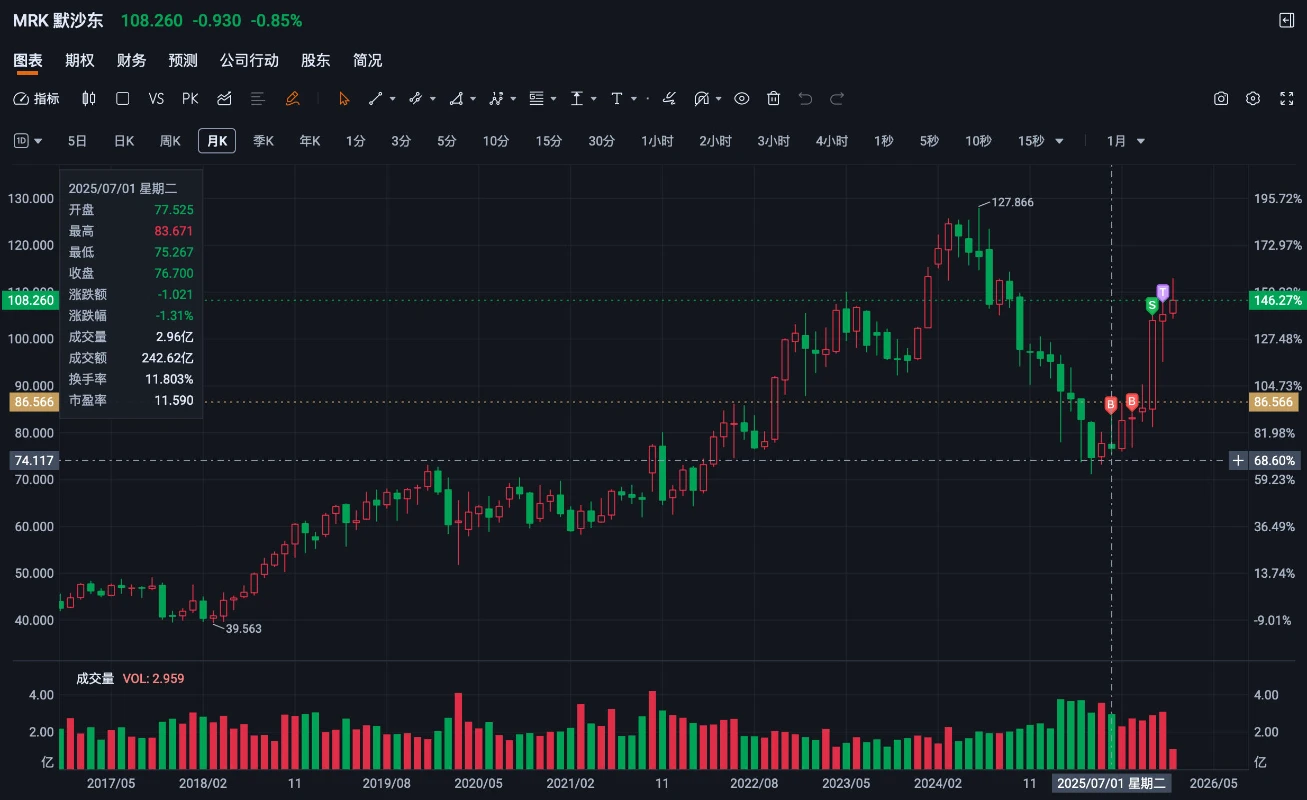 赶上了特朗普的制造的关税升级,叠加市场对药品价格与监管的预期反复摇摆,市场对制药巨头的定价一度极端悲观。MRK 恰好处在一个被情绪错杀的位置。